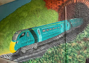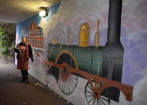 The mural, painted by local artist Caroline Brady, has taken inspiration from archive images of railways, tunnels, bridges and the town’s railway station and took Caroline more than two months to complete.