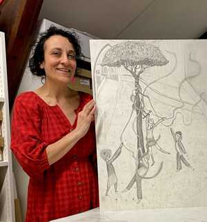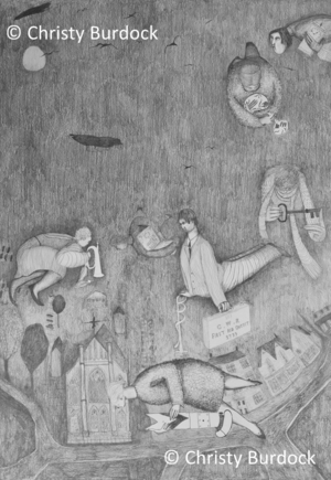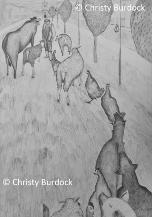 This very special exhibition showcases wonderful drawings by an award winning artist, all inspired my our small market town. Hear her describe the story behind each work in her own words…over to you Christy…