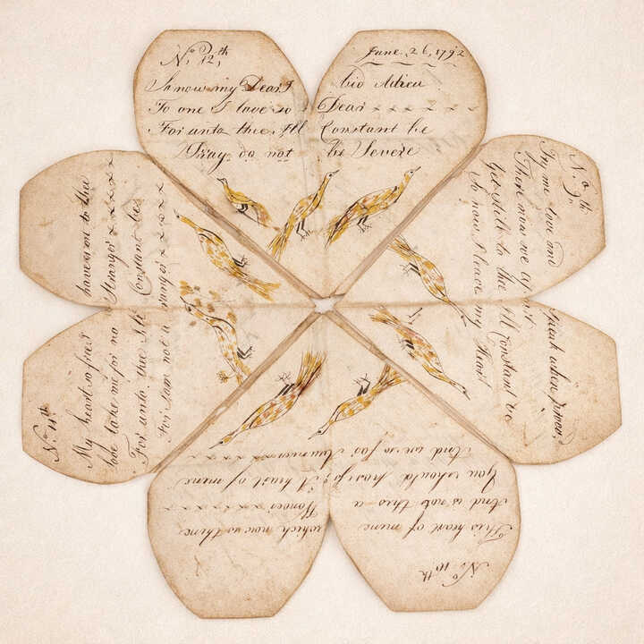 In total, the intricate design reveals eight interlocking hearts, each folding into the next — and across the whole token are twelve verses of heartfelt poetry.